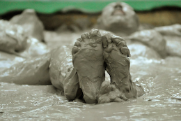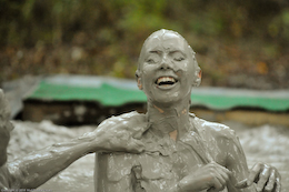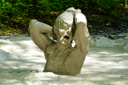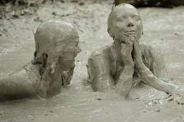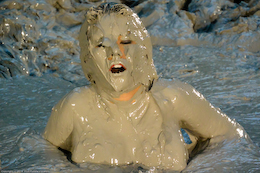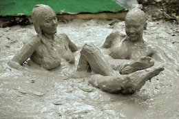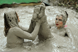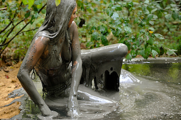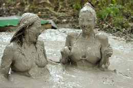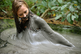 heats up the clay pit at dusk with a sultry display of sexy mud