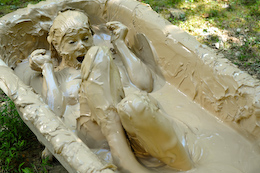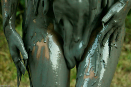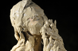 the clay on her body, covering her face, and clogging her hair.