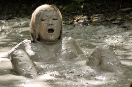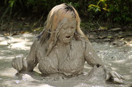 when she slips and falls head first in the pit! The creamy clay