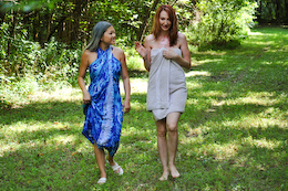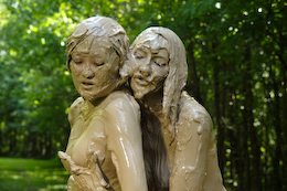 ladies get a long dress filled with clay, and then let the mud