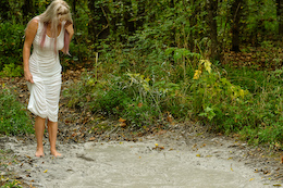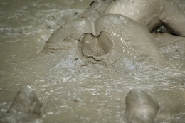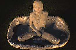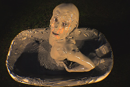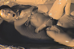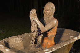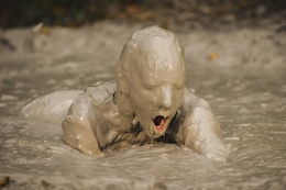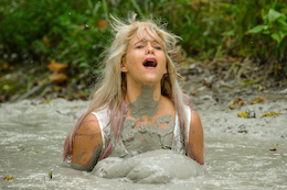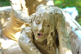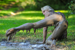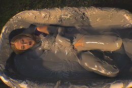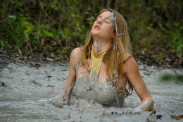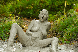 shocked when she slipped into the creamy clay with bubbles splashing