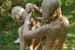 the eyes and the ears, Ashley slips into the creamy clay and makes