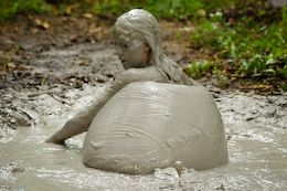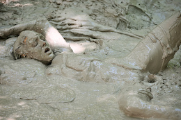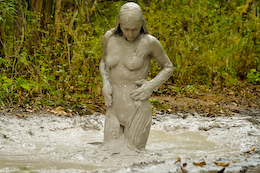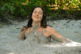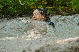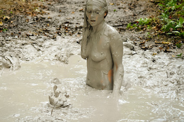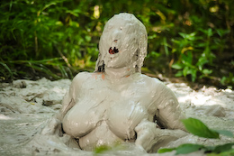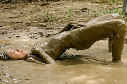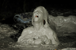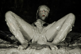 There are nice shots of her laying back in the creamy mud. She even