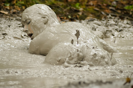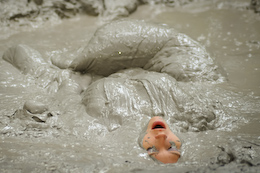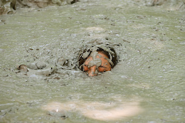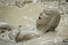 enjoys a nice, long wallow in bubbling clay that just keeps bubbling