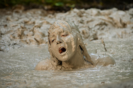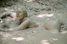 takes her turn in the mud bubbles - which turns out to be a *long*