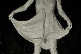 out ready to make use of the muddy fabric of her dress, thick with